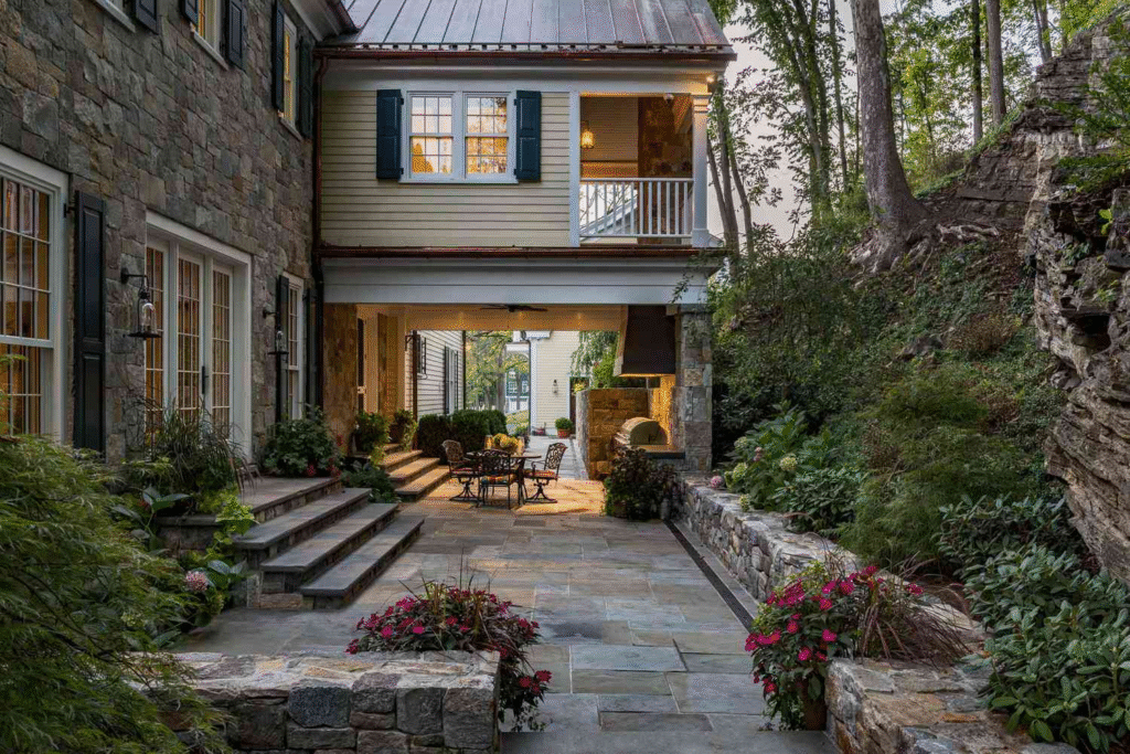 Bushes, vines, and planters next to siding act as fuel ladders. Non-combustible hardscape within Zone 0 is one of the highest-ROI wildfire upgrades.